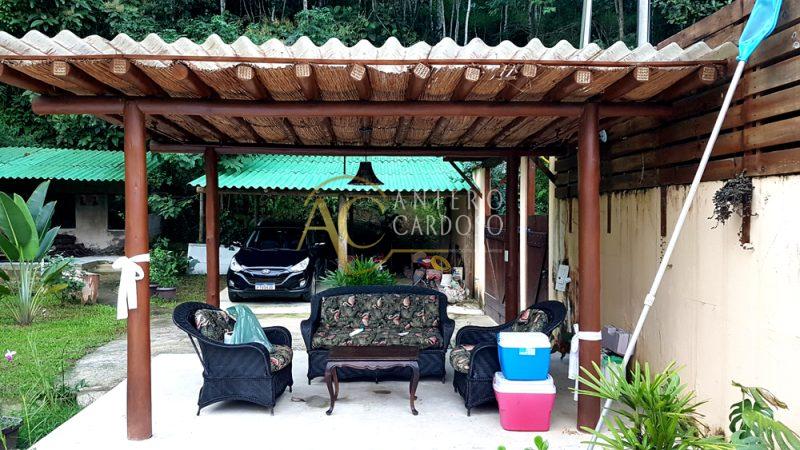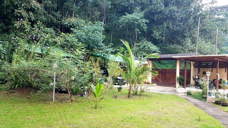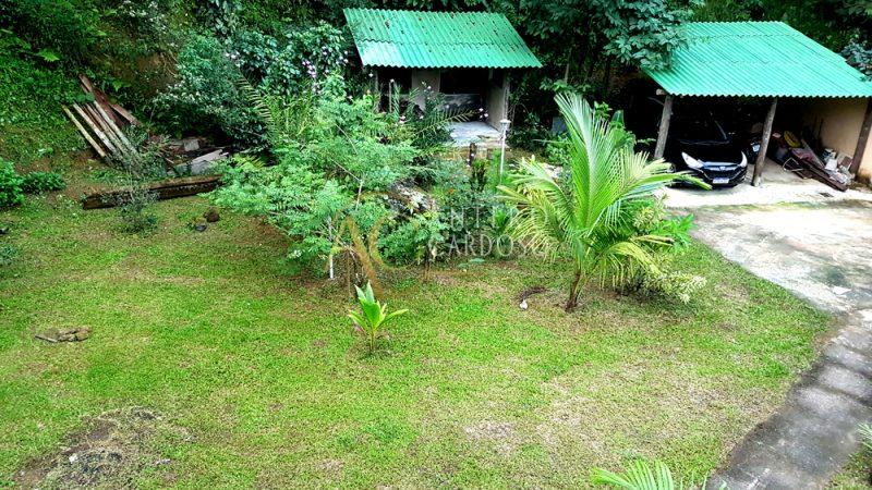 Garagem coberta para 2 carros e espaço pra outros 5 carros, jardim, árvores com várias arvores frutíferas (acerola, pitanga, mexerica, jabuticada, , pitanga, limão, laranja, amora ) dentro da Mata Atlântica, cercada de muito verde.