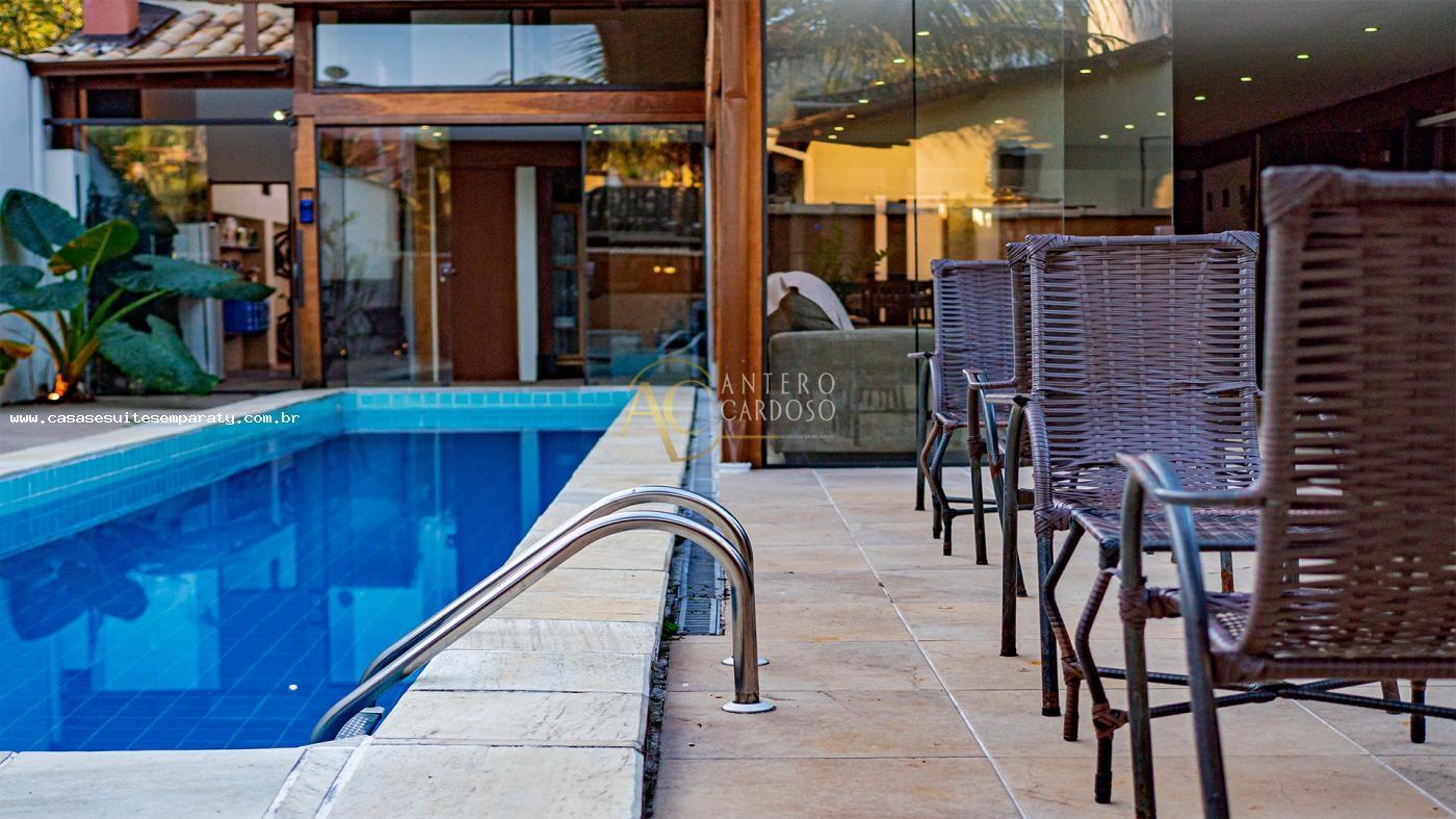 Para o lazer, ela conta com uma deliciosa área externa com jardim, ducha e uma piscina maravilhosa em formato de raia.