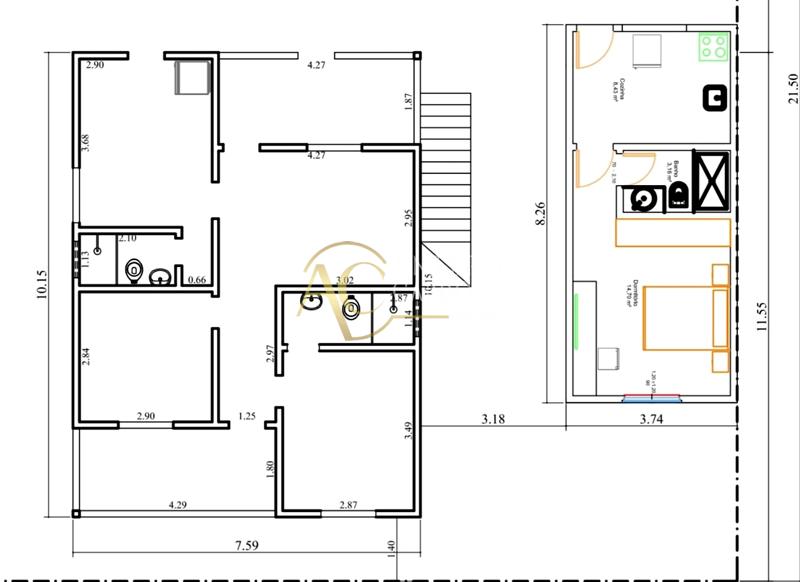 Sendo uma delas 1 kit net de 1 quarto, cozinha e banheiro e um segundo prédio composto de 1 duplex com entrada independente possuindo em seu 1° piso 2 quartos, sala, cozinha, banheiro e varanda e sem seu 2° piso 2 quartos sendo uma delas suíte, sala, cozinha, banheiro social e 2 varandas.