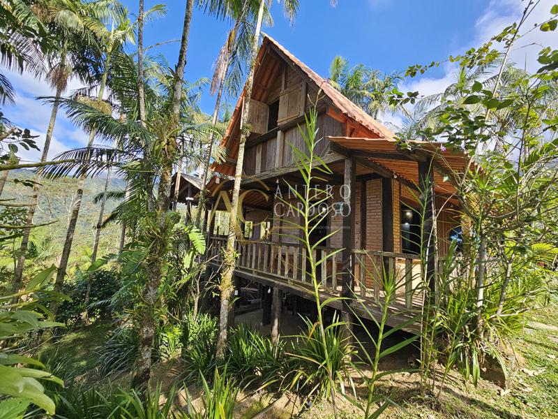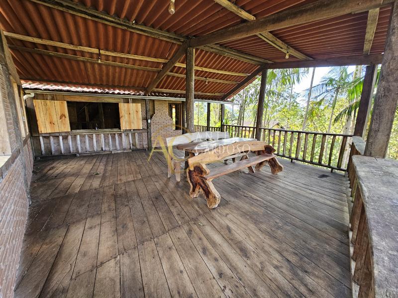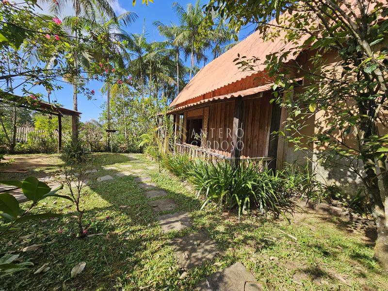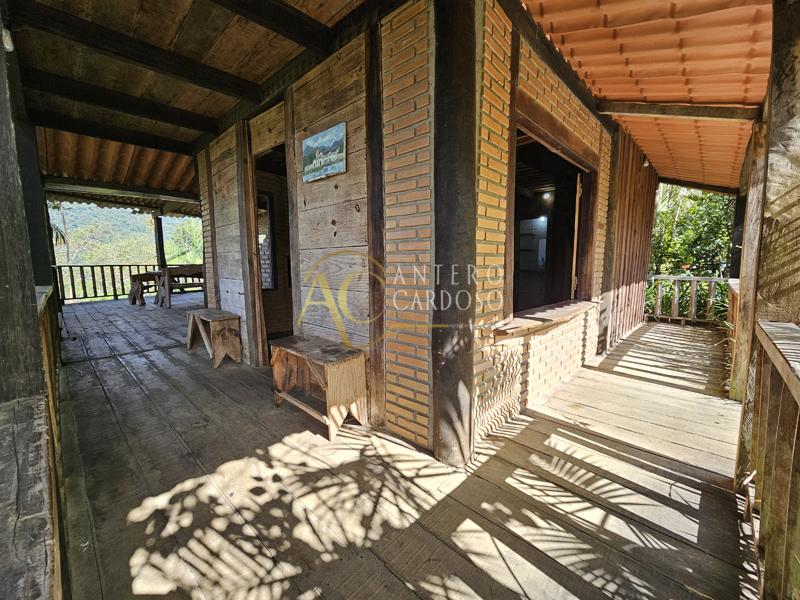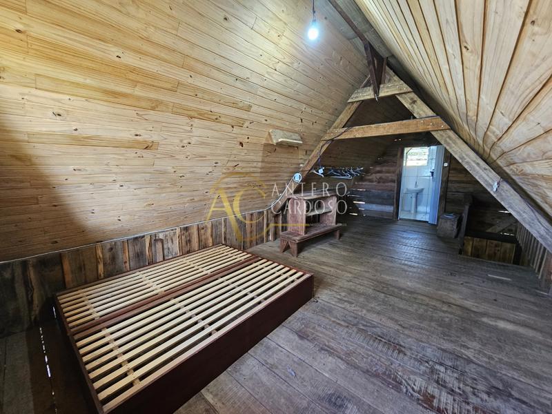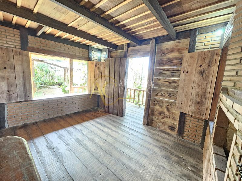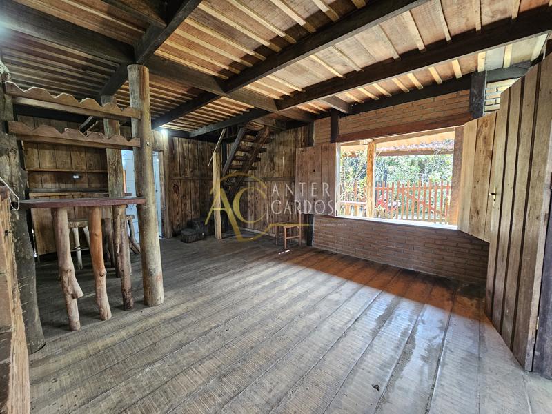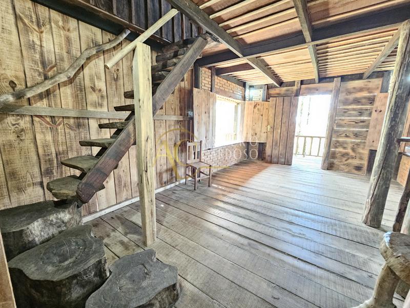 Chalé Rústico totalmente de madeira, possuindo aproximadamente 120,00m2, possuindo um varandão, ideal para confraternizações, varanda, sala com lareira, cozinha, banheiro social, 1 suíte ampla e área de serviço, garagem coberta e quintal