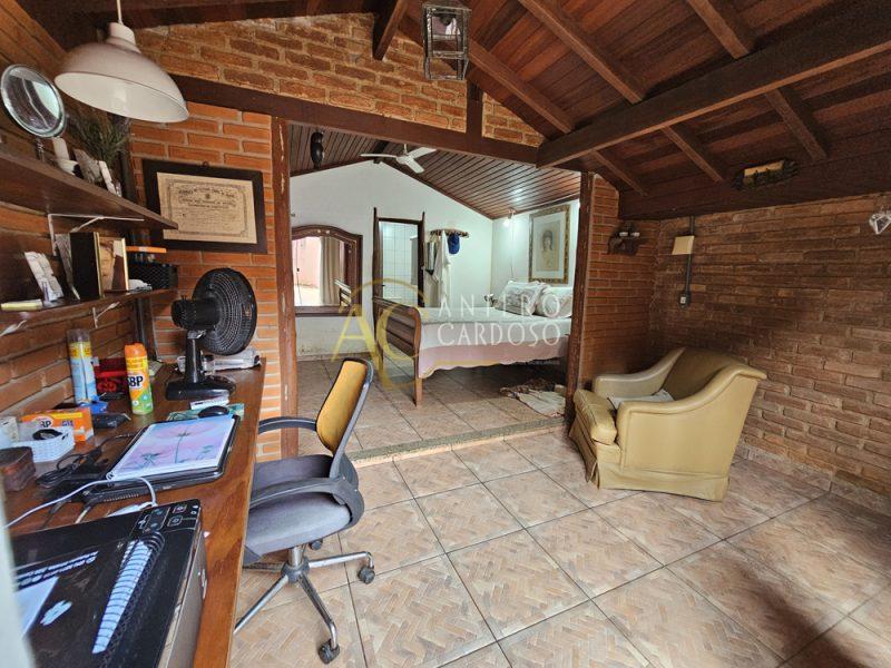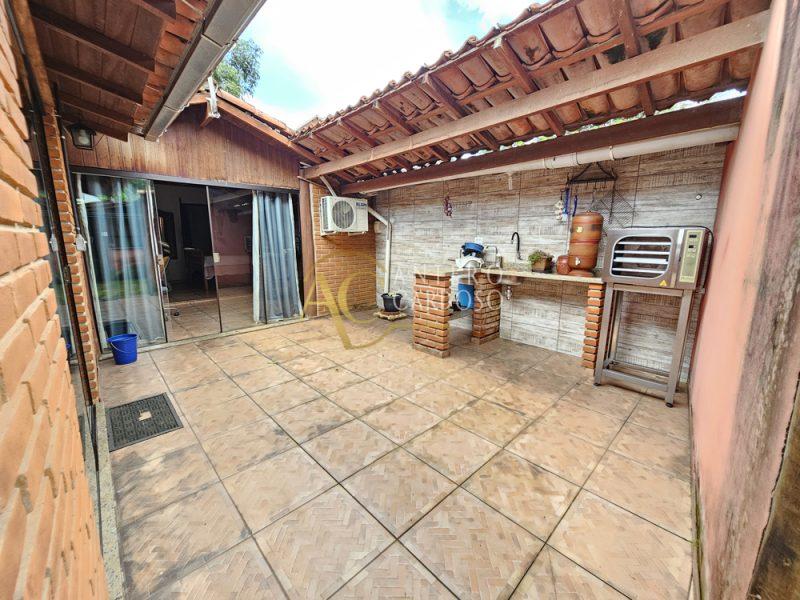 Trata – se de uma casa térrea com excelente acabamento em madeira nobre, estilo Europeu, composta de 3 quartos sendo 2 suítes, sala e Cozinha ampla, banheiro social, área de serviço, área Gourmet, lavanderia, escritório, 2 cômodos para guardados, garagem e quintal amplo.